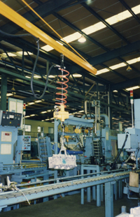 在搬運各式機械零件、模具,一般貨物及各式組裝物件時,可選擇仁文輕型搬運軌道系統,並搭配任何類型的電動吊車,氣動吊車;且可符合客戶需求搭配本公司研發的專用治具夾持專門工件,達到客製化需求;真空搬運機適用於吸取各種不同形狀的物件及橡膠塊。