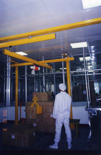 本公司輕型天車可以安裝在一般的標準廠房、家庭式工廠、鐵骨廠房、或結構強度設計較低的老舊廠房。其懸吊裝置可以直接掛吊在天花板下、RC橫樑下、H型鋼下,平頂、斜頂都可以。